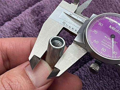 Above, measuring the diameter of a threaded body insert using a Dial Caliper