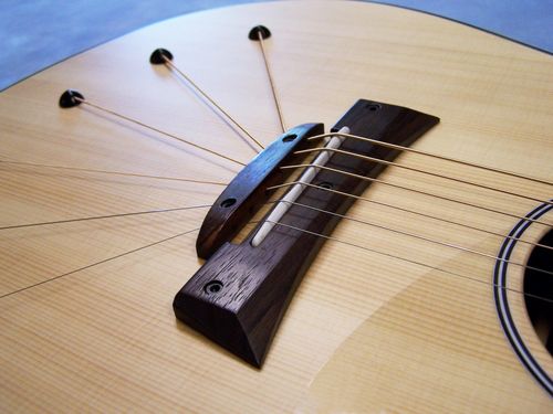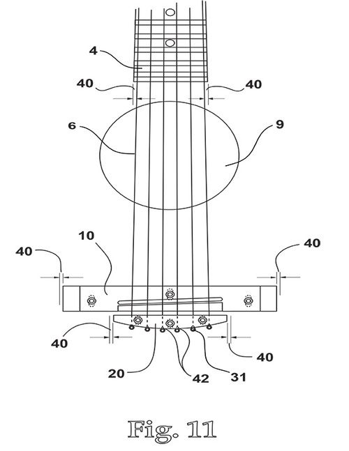 This is possible due to the absence of bridge pins (and glue), as well as the incorporation of proprietary fastener slots provided in the soundboard.