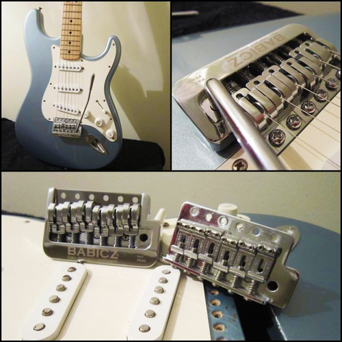 Installation was a breeze. There were no new holes to drill, and the staff at Babicz was more than happy to double check with me and make sure I was getting the right bridge for my guitar, a 2002 Fender Standard Stratocaster. The FCH kit included a bridge, saddles, springs, a whammy bar, tremolo claw, instructions and plenty of screws.