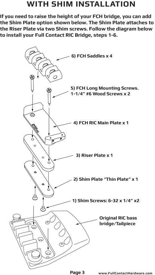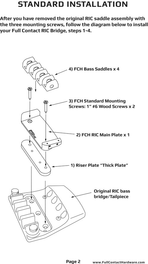 *Note 2: The Babicz FCH Bridge for RICK does not address "bridge lift", found on some 4001 series basses. For optimum performance, a slight lift is acceptable, however if your bridge lift is severe then you may want to consider purchasing a new one from AllPARTS