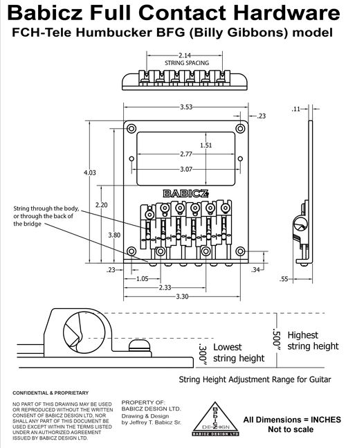 Overview: String from the back of the bridge (à la BFG), or string through the body...either way the Babicz FCH- Tele Humbucker bridge is a complete package of tone! Includes mounting screws, adjustment wrenches, and instructions. Weight: 6.0 oz.