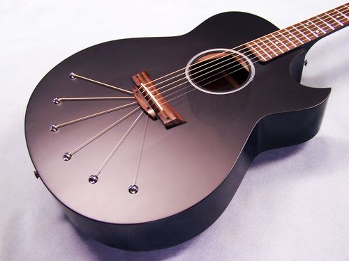 The thinner body dimensions of The Spider lends itself well to electric guitar players while the fast neck allows for full access to all twenty frets. The Spider is a versatile guitar, covering a diverse range of styles. It has been a favorite of many rock guitarists as the incredibly low action simulates the feel of a well set-up electric guitar. There is virtually no loss of response up the fingerboard...notes ring strong and true, whether played as hard strumming chords or lighting fast leads.